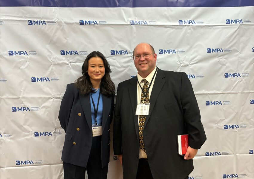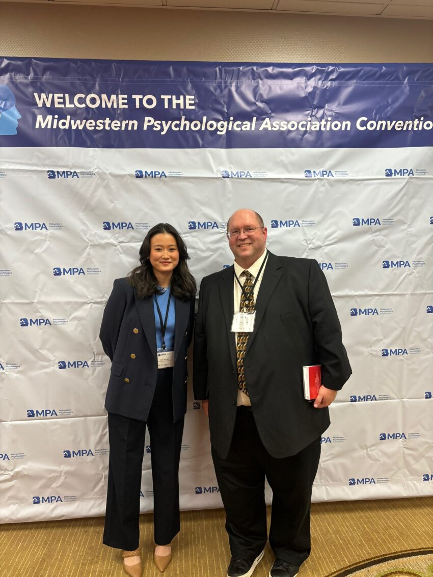 - 4年生の時にシカゴで行われた心理学のregional conferenceに参加したときの写真です。Distinction(優秀卒業)で行った研究の発表をしました。