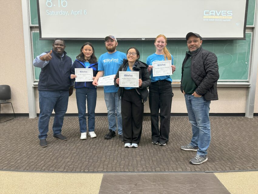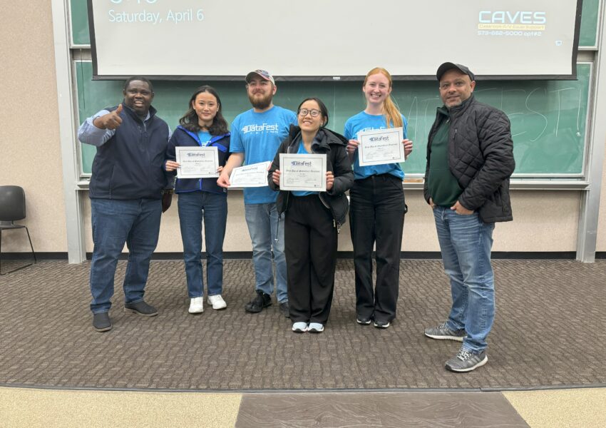 - 4年生の時にデータアナリシスのコンペにチームで出場した時の写真です。Best in Statistical Analysisをいただきました。