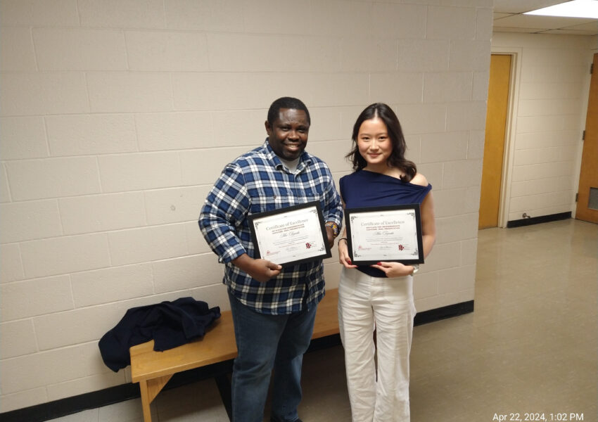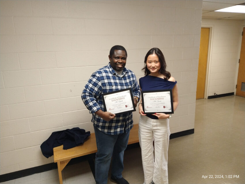 - 四年生の時student research conference senior capstone oral presentationで一位と二位をいただいた時のです。左はお世話になった統計の教授です。