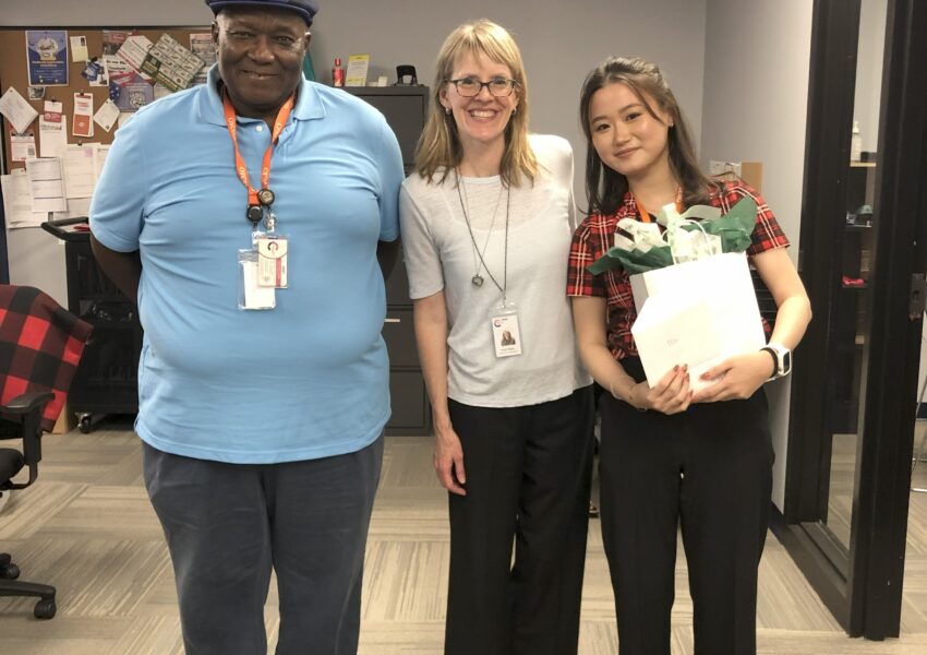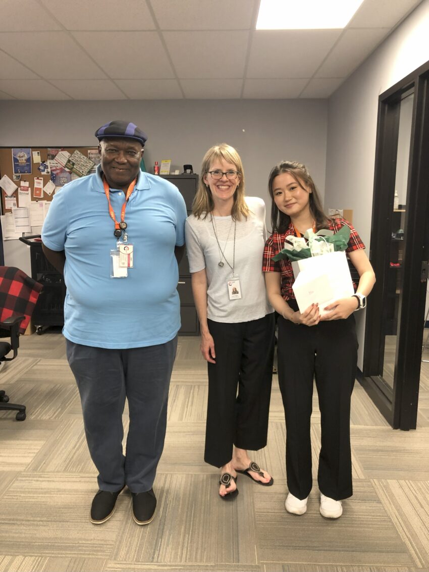 - 3年生の時にした非営利団体のインターン最終日です。真ん中はお世話になった直属の上司で左は研究先の部署のデレクターです。